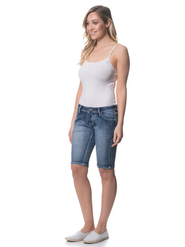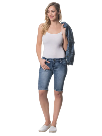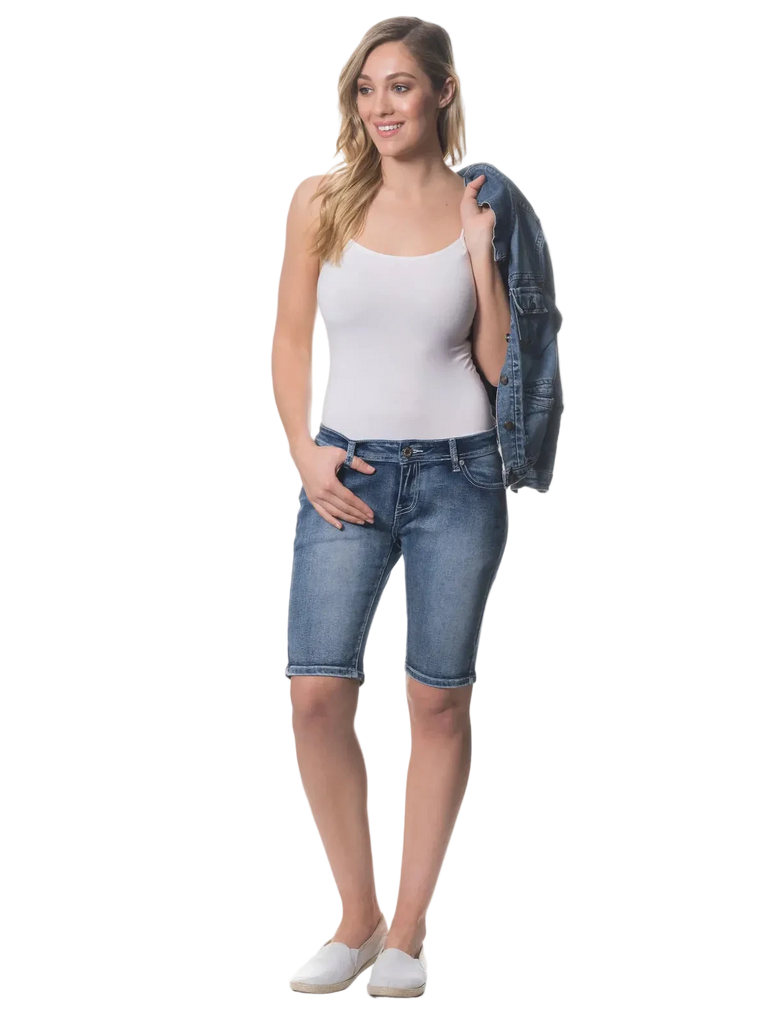 Designed with a midrise waist, sitting snug on the hips and stretching long and slim to the knees.