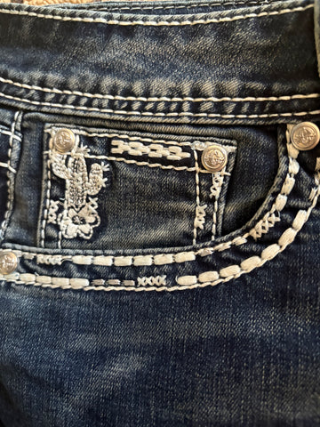 Grace In La aims to provide a wide range of jeans to fit all ladies. If you are looking for a gorgeous design on longer length jeans, look no further! This design is stunning with a longhorn and cactus design in embroidery, with silver sequins and crystal rhinestones. There is also a matching cactus on the front right hand pocket.