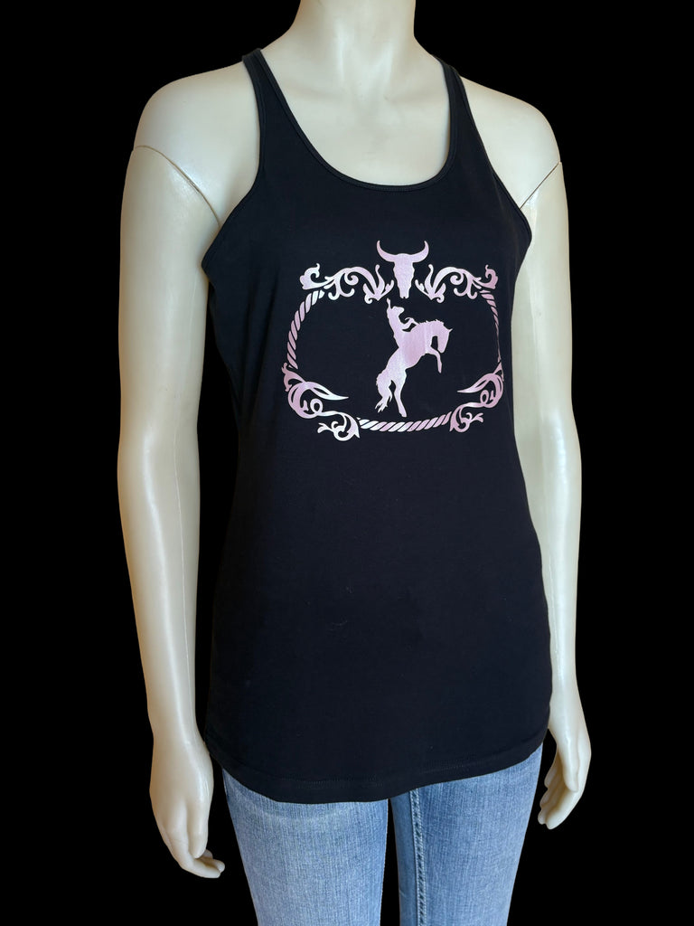 Bronc Buckle Dusty Diamonds Black Tank Top